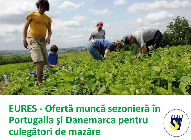 Agenţia Județeană pentru Ocuparea Forţei de Muncă (AJOFM) Gorj, prin intermediul serviciului EURES România, face cunoscută gorjenilor oferta de muncă de lucrător în agricultură – culegător de mazăre pentru Danemarca şi Portugalia.