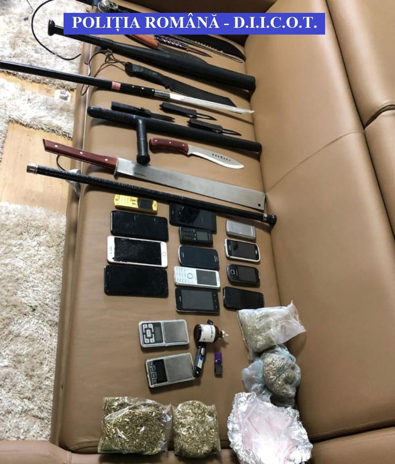 În urma efectuării percheziţiilor domiciliare au fost ridicate în vederea continuării cercetărilor mai multe pungi ce conțineau materie vegetală cu miros specific, cinci cântare folosite la porționarea masei vegetale, două stick-uri de memorie, o râșniță de mărunțit şi 23 de terminale mobile.