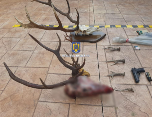 În urma perchezițiilor, au fost ridicate, în vederea cercetărilor, 8 arme de vânătoare, deținute legal, un amortizor de sunet, un dispozitiv de vedere pe timp de noapte, 585 de cartușe de vânătoare, 280 de kilograme de carne de vânat, 8 trofee de cervide, 3 topoare și 4.300 de țigarete, deținute în afara unui antrepozit fiscal, fără a avea timbru de marcaj fiscal.
