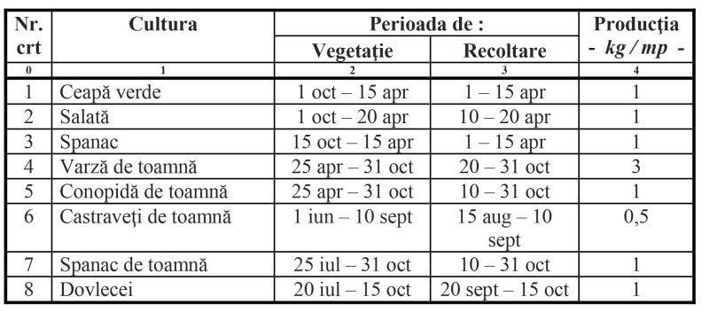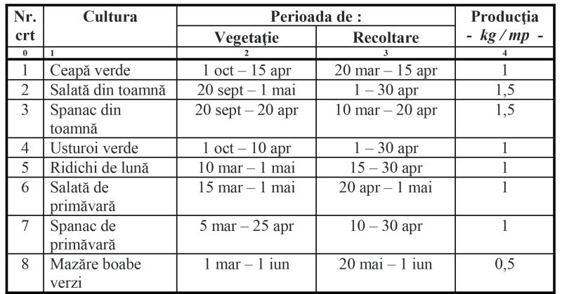 1 – La culturile anticipate înfiinţate între 1 octombrie și 1 aprilie anul următor