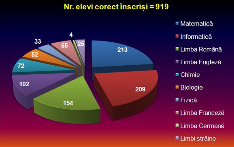 Potrivit datelor publicate de reprezentanții Centrului Județean de Excelență Gorj, 919 de elevi din județ au completat formularul de înscriere disponibil pe site-ul unității. Pe discipline, situația se prezintă astfel: Matematică – 213, Informatică – 209, Limba română – 154, Limba engleză – 102, Chimie – 72, Biologie – 52, Fizică – 33, Limba franceză – 55, Limba germană – 4, limbi străine (fără a se specifica care) – 25. Vor fi formate 40 de grupe de excelență; numărul de elevi pentru formarea unei grupe de excelență este de 10-15 la care se pot adăuga maxim 5 elevi auditori (rezerve). Grupele pentru care numărul de elevi înscriși este mai mare de 20 de elevi trebuie să susțină examen de selecție. „Nu toți copiii înscriși prind grupe. Nu au cum să prindă. (…) Vom organiza examene de selecție acolo unde este cazul. Mai sunt câteva etape ce trebuie parcurse până la definitivarea grupelor.