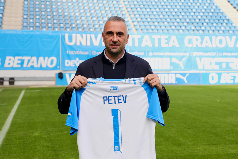 Ivaylo Petev a fost prezentat, oficial, ca antrenor al Universității Craiova. Tehnicianul bulgar a semnat un contract valabil până în 2026. În vârstă de 48 de ani, Petev și-a legat cariera de fosta campioană a Bulgariei, Ludogorets, echipă pe care a preluat-o din Liga a 3-a și cu care a reușit să câștige trei titluri. AEL Limassol (octombrie 2013 – noiembrie 2014), Dinamo Zagreb (septembrie 2016 – iulie 2017), Omonia Nicosia (decembrie 2017 – martie 2018) sau Jagiellonia (decembrie 2019 – iulie 2020) sunt alte repere din cariera lui Petev, care a fost și selecționer al Bulgariei și Bosniei. Tehnicianul își dorește să facă din Universitatea o echipă europeană și spune că s-a simțit foarte dorit în Bănie. Va debuta în meciul cu marea rivală, Dinamo București. „Universitatea Craiova este echipa care m-a dorit cel mai mult din cariera mea, asta înseamnă respect. Am jucat şi cu jucători români pe vremuri, am antrenat români, urmăresc acest campionat şi părerea mea este bună despre fotbalul românesc. Oriunde te duci, munca este la fel, trebuie să lucrezi cu toată inima şi să dai maximum. Fiecare trebuie să dăm totul, pentru ca Universitatea să arate cum trebuie, ambiţiile mele şi ale patronului sunt aceleaşi. Dacă nu eşti 24 de ore implicat, este greu să obţii ceva. Aş fi cel mai fericit să luăm titlul, dar în acest moment nu este cel mai important lucru, ci trebuie să pregătim echipa şi să câştigăm. Craiova are tot ca infrastructură, are jucători cu potenţial, trebuie să muncim şi să mergem într-o direcţie corectă. Am văzut multe meciuri ale Craiovei şi ştiu jucătorii, dar e important să-i cunosc de aproape, ce profil au şi, în funcţie de asta, vom adopta şi un sistem de joc potrivit. Munca este muncă în orice club, nu consider că este un pas înapoi venirea la Craiova, eu şi echipa mea o să dăm totul pentru a avea rezultate bune şi să mulţumim oamenii. Proiectul este foarte important, am venit aici pentru proiect şi pentru acest om, Mihai Rotaru. Aşteptările sunt mari, este normal, avem potenţial şi putem câştiga orice meci atunci când lucrăm cum trebuie. Ştiu despre rivalitatea cu Dinamo, indiferent în ce formă sunt ei, numele este mare, orice meci e greu, e important cum o să acţionăm noi în acest meci, sper să ne prezentăm bine şi să câştigăm”. A fost prima conferință de presă la care a participat finanțatorul “juveților”, Mihai Rotaru. Cel din urmă a declarat că are alte așteptări de la Ivaylo Petev față de “principalii” cu care a lucrat până acum. “Întotdeauna mi-am dorit un manager la Craiova, să coordoneze clubul, să dezvolte scoutingul, academia. Negocierile au început, din punctul meu de vedere, la Bansko, unde am stat în aceeaşi bază, astă-vară. M-a atras, în primul rând, motivaţia lui. Nu au fost probleme la negocieri, avem aceeaşi abordare în ceea ce priveşte un club de fotbal, fiindcă nu suntem o echipă, ci un club de fotbal, tot ce presupune tradiţie, suporteri, valori, fotbalişti”, a spus Mihai Rotaru. Meciul de debut al lui Petev are loc pe Stadionul “Ion Oblemenco”, duminică, de la ora 16.00.
