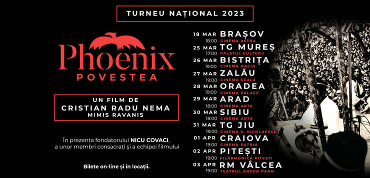 Turneul național al filmului „PHOENIX – Povestea” continuă și în 2023.  După cele opt proiecții speciale din luna decembrie, filmul regizat de cineastul Cristian Radu Nema ajunge și la Târgu-Jiu.