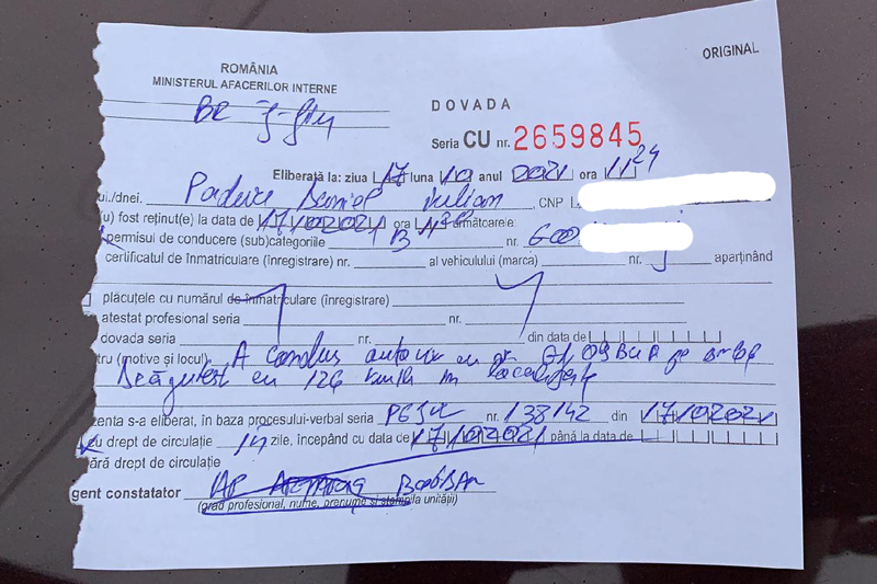 „Depășind limita legală de viteză cu peste 60 km/h, bărbatul a fost sancționat contravențional cu suma de 1.305 lei, conform O.U.G. 195/2002, privind circulația pe drumurile publice, cei 1.305 lei reprezentând minimul prevăzut de lege pentru aceasta încălcare legislativă, fiindu-i totodată reținut permisul de conducere. Facem precizarea că depășirea limitei de viteză este una dintre principalele cauze generatoare de evenimente rutiere, iar a conduce cu o viteză de 126 de km/h în localitate putea duce la tragedii pe drumurile publice, chiar și la pierderea de vieți umane, cu atât mai mult cu cât, la momentul respectiv, condițiile meteo erau nefavorabile circulației (carosabil umed). Agentul de poliție i-a oferit conducătorului auto posibilitatea de a-i înmâna dovada cu drept de circulație pentru 15 zile și întocmirea procesului verbal în lipsă, spre a-i fi comunicat ulterior, așa cum prevede legea. În spatele uniformei de polițist, nu am ezitat să empatizăm sau să dăm dovadă de umanitate și înțelegere, însă astfel de abateri legislative nu pot fi ,,trecute cu vederea”, deoarece pot genera situații mult mai neplăcute”, a transmis Inspectoratul Județean de Poliție Gorj.