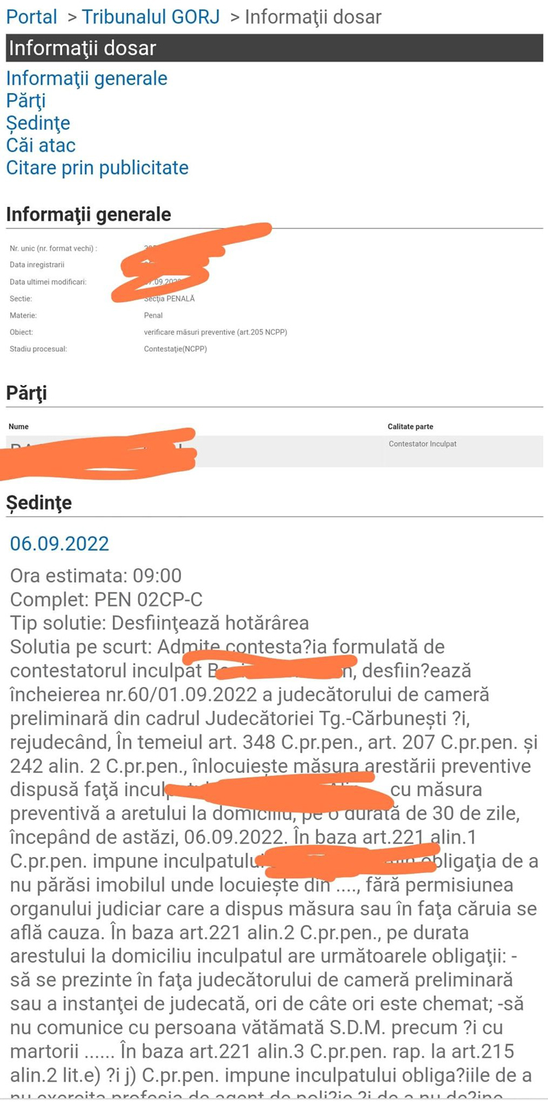 După două luni și jumătate de arest preventiv, polițistul din Bustuchin, salariat al IPJ Vâlcea a fost pus, marți, în arest la domiciliu pentru 30 de zile. Deși acuzațiile la adresa sa sunt fundamentate doar pe declarația minorului de 12 ani, potrivit probelor din dosarul penal, agentul de poliție în vârstă de 36 de ani a fost reținut la finalul lunii iunie. Asta, inițial pentru 24 de ore, apoi pentru 30 de zile pentru trei ori consecutiv, doar pentru ultima contestație inculpatul având câștig de cauză acum, pe 6 septembrie. Polițistul nu a recunoscut acuzele care i se aduc și a cerut să fie pus la detectorul de minciuni. Soția acestuia, salariată a Primăriei Bustuchin, a făcut nenumărate sesizați la instituțiile statului cerând ca acest caz, de abuz, să fie cercetat cu atenție, femeia considerând că soțul ei este victima unui complot. Familia al cărui copil l-a acuzat pe polițistul respectiv că l-ar fi adresat sexual a fost ajutată, cu scop umanitar, de cei doi soți.