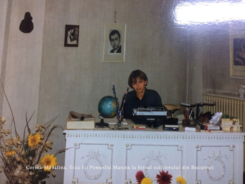 Pompiliu Marcea are cea mai mare bucurie a vieţii sale, în vara anului 1964 când se naşte unicul său copil, Corina-Mădălina.În anul 1968, Pompiliu Marcea avea să susţină teza de doctorat cu lucrarea ,,Ioan Slavici”. Din comisia de doctorat a făcut parte şi Constantin Ciopraga care spune: ,,Când Pompiliu Marcea şi-a susţinut teza la Facultatea de litere din Bucureşti, am făcut parte din comisia de doctorat. A fost un moment luminos de afirmare a personalităţii sale, concluziile fiind unanim elogioase. Şi-a luat titlul de doctor într-un mod remarcabil. Despre profilul intelectual al lui Pompiliu Marcea, exegetul literar, îmi formasem o idee înainte de a-l fi cunoscut direct. I-am urmărit comentariile dense din presa de specialitate; m-a ţinut în loc substantiala sa monografie despre Ioan Slavici, de la a cărei apariţie trecuseră exact 30 de ani! O nouă ediţie amplificată, avea să apară în 1968, constuindu-se într-un instrument de lucru indispensabil… De numele lui Pompiliu Marcea, profesor la Universitatea din Bucureşti, se legă în special , alte două volume, ambele despre autorul ,,Baltagului”: unul dintre ele, ,,Lumea operei lui Sadoveanu” 1976) vizează tipologiile caracteristice purtând amprenta marelui prozator; celălalt ,,Umanitatea sadoveniană de la A la Z” (1977) e un dicționar de personaje sadoveniene, scriere de pionierat în întreaga noastră literatură, incluzând peste 3000 de nume, lucrare de un deosebit interes pentru toţi aceia care au tangenţă cu ampla operă în cauză. Ulterior, l-am revăzut de mai multe ori. Odată era preocupat de un răspuns ferm într-o dispută despre Eminescu. Era intransigent. Apoi am auzit stupefiat că gorjeanul, omul de acţiune, confrate de căutări nu mai era. În ochii acestui oltean ager, cu stagii în Franţa şi în Germania, puteai citi bucurie, bunătate, dar şi hotărâre de nezdruncinat. A-l readuce imaginar printre noi, iată o modalitate pioasă de rememorare”(1995). Devenind un valoros cadru universitar, cu o temeinică pregătire în domeniul literaturii şi cu o bogată experienţă didactică prof. univ. Pompliu Marcea va desfăşura o bogată activitate, la celebre universităţi, contribuind la cunoaşterea valorilor civilizaţiei şi culturii româneşti peste hotare. Astfel perioada anilor 1970-1973, îl găsim pe Pompiliu Marcea, predând la Universităţile din Koln, Bonn, Aachen şi Dusseldorf din Germania. Unchiul meu mi-a spus că fiind în străinătate i s-a propus să se stabilească cu familia şi să predea la universităţi din mai multe ţări precum Germania, Franţa, Canada dar nu a vrut să părăsească România spunând că are o misiune de îndeplinit în ţara sa, aceea de ridicare a gradului de pregătire a tineretului universitar şi a cadrelor didactice la nivel european. Îmi mai spunea că acolo eşti apreciat dacă mergi ca specialist sau să muncești o periodă determinătă de timp, nu să le ocupi locurile de muncă, locuinţe, terenuri etc. şi s-a bazat şi pe zicala ,,Fie pâinea cât de rea tot mai bună-n ţara mea”. Iată o dovadă clară de mare patriot. Unchiul meu venea în satul Colibaşi, la casa părintească, să-şi vadă mama, fraţii şi nepoţii de două ori pe an, în mod special de 15 august sau 8 septembrie, de ziua mamei sale. De câte ori venea cu familia, mergea şi la Blahniţa, unde le arăta fetei şi soţiei locurile de joacă, pe unde mergea cu animalele la pășunat când era copil şi unde se scălda. De fiecare dată intra în apă să prindă peşte fiind un artizan în acest domeniu. Ne spunea că este foarte ocupat şi regretă că nu poate să vină mai des sau să stea mai mult de două zile. Când venea unchiul acasă era mare sărbătoare. Toţi, fraţi, surori, nepoţi ne aşezam în jurul mesei şi asistam la discuţii. Ne spunea că el ,,trăgea” şi câte 15 ore pe zi fără pauză în afara unei cafele, ,,fără nici o caznă, ba chiar cu un soi de voluptate”. Mai venea în trecere, cu colegii când aveau întâlnirea la Şcoala Normală ori când se desfăşurau examene de grad pentru profesori la Craiova, el fiind ani buni preşedintele comisiei de examinare pentru regiunea Oltenia si nu numai. În primavara anului 1975, în luna aprilie primeşte a 2-a şi cea mai grea lovitură, decesul mamei sale la vârsta de 72 de ani. Pierderea mamei i-a produs o mare suferinţă. În perioada comunistă, odată cu adoptarea legilor de sistematizare rurală și nu numai, Pompiliu Marcea a dat dovadă de foarte mare curaj şi a înaintat mai multe memorii conducerii superioare de partid şi de stat, inclusiv lui Nicolae Ceauşescu prin care cerea încetarea demolării satelor românești, a monumentelor istorice şi a bisericilor, a cerut împroprietărirea ţăranilor cu pământ, s-a opus politicii demografice greşite, căreia i-au căzut pradă mii de femei, s-a opus exportului masiv de produse alimentare, care a dus la anii de criză şi înfometare a poporului roman. A dorit eliminarea desfăşurării de munci agricole şi pe şantiere pentru elevi, studenţi şi militari, s-a opus cenzurii şi politicii editoriale greşite, a criticat abuzurile unor activişti politici şi demnitari de stat etc. Pot să spun că, satul lui, Colibaşi, care era propus pentru demolare în acea perioadă, există şi astăzi datorită implicării lui Pompiliu Marcea. În urma acestei acţiuni foarte riscante la vremea respectivă a reuşit să convingă autorităţile comuniste, satul său Colibaşi existând şi astăzi. El a continuat tot timpul a se interesa ce se întâmplă cu oamenii din sat pentru că ori de câte ori mergeam la Bucureşti, el mă întreba totdeauna, de la primul om din capătul satului până la ultimul din ultima casă despre familia lor, despre copiii lor dacă mai cresc animale, dacă au servicii, acesta având o memorie fantastică, întrucât nu omitea pe nimeni. O perioadă de