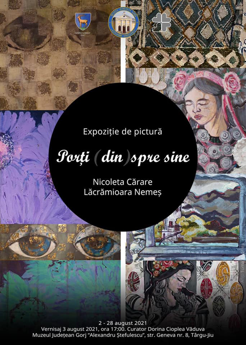 Mâine, de la ora 17.00, Muzeul Județean Gorj ,,Alexandru Ștefulescu” din Târgu-Jiu va găzdui vernisajul expoziției de pictură ,,Porți (din)spre sine”. Expun artistele Nicoleta Cărare și Lăcrămioara Nemeș. Lucrările acestora vor rămâne pe simezele Muzeului Județean Gorj până la sfârșitul acestei luni.