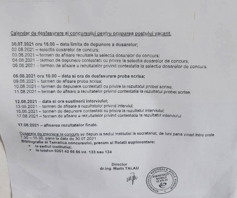 Deși am făcut public deja a treia oară acest post, din dorința ca cei interesați să aibă acces la informație, speram ca jocurile vehiculate în spatele concursului să nu aibă loc deoarece organele de cercetare penale încadrează rapid fapta într-o infracțiune greu de demontat.