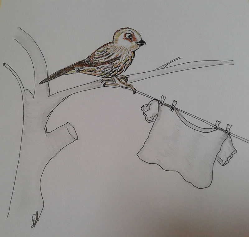 Țop – Țop – Țop! Și de la capăt … Vrăbiuța dovedea perseverență … Și curaj … Se înființa, nechemată, la prânzul păsărilor de casă … ataca ,,meniul” porcului … O aflai când pe terasă, când pe scări … în zbor scurt spre tufișurile de grozamă … cocoțată pe pompa de apă … legănându-se pe sârmele de rufe … Toată lumea se obișnuise cu ea … era de-a casei … făcea parte din peisaj … Până într-o zi … În ziua cu pricina, Ileana întinsese soarelui rufe albe ca spuma, pe care vântul le unduia ușor … Țopăiuță vrăbiuța le privi o vreme, de pe marginea vasului cu apa, cu ochi sclipitori … apoi, neavând de lucru, țâșni, scurt, drept pe sârmă … și, după obicei, începu a țopăi … în echilibru … pe ,,drumul cel alb …” Un ceas mai târziu, ieșind din casă să verifice care rufe s-au uscat, Ileana își puse mâna pe gură: un șir ,,pictat“ de urme, prezent pe toate rufele, aducea un plus de ,,culoare“ … Se necăji grozav: le aruncă pe toate în coș și reîncepu truda înălbirii lor … Când chemă găinile și puii și Țopăiuță – după obicei, se înființă la festin, Ileana o alungă … Nedumerită, Țopăiuță încercă să se mai apropie de câteva ori … Degeaba! Ileana nu mai avea îngăduință pentru ea … Stătu câtva timp, întrebându-se care era cauza … și, negăsind niciun răspuns, își aduse aminte de buna Vrăbiuna, cea mai bătrână dintre vrăbiuțe … Ei trebuia să îi ceară sfat … Un zbor scurt, zvâcnit, către cireșul din fundul curții, unde Buna Vrăbiuna odihnea o mare parte din timp … O găsi picotind … La auzul zgomotului făcut, Vrăbiuna deschise ochii și întrebă pe o voce slabă: ,,Care ești? Aaa, tu erai Țopăiuță … Ce pozna ai făcut?” ,,Eu? Nimic!”… răspunse candid Țopăiuță, instalându-se confortabil pe creangă … ,,Numai că nu știu ce s-a întâmplat și am venit să îți cer sfatul …,,După cum știi”, începu ea, ,,toată grădina e a mea … și nu numai grădina … pot sări și zbura oriunde doresc și pot să mănânc alături de Gicu – porcul și de găini … Puteam”, se corectă ea …,,De azi, Ileana s-a supărat pe mine … Nu știu ce am făcut, de mă alungă de la masă și de peste tot…” ,,Chiar nu știi?”, întrebă cu un ciripit scurt Vrăbiuna … ,,Atunci, să îți reamintesc eu … Azi ai fost și la masă la găini, și la troaca porcului … nu numai că ai mâncat, dar ți-ai înmuiat și gheruțele în mâncare, și așa te-ai cocoțat pe sârma de rufe, peste rufele albe ale femeii, obligând-o să le mai spele odată” … ,,De aceea e supărată Ileana!”… Ține minte de acum încolo: În tot ceea ce faci, trebuie atenție, grijă și răbdare; tot ceea ce faci, nu face necugetat! Faptele tale, bucuria ta, pe cât se poate, să nu producă supărare sau suferință altcuiva! Respectă munca altuia … Țopăiuță mulțumi pentru sfat și se reîntoarse în curte … Ileana chemă pasările la masa de seară … Îi trecuse supărarea și nu o mai alungă … Pe sârme erau iar întinse rufele de un alb sclipitor … însă Țopăiuță nici nu le mai băgă în seamă …Când veți mai vedea o vrăbiuță țopăind pe sârma de rufe, spuneți-i povestea Țopăiuței … dacă nu vă va asculta până la sfârșit, măcar vă va bucura privirea cu săriturile ei … Noi, oamenii, o știm: stă în noi puterea de a face bine și de a-i ajuta pe copiii noștri să fie mai buni …