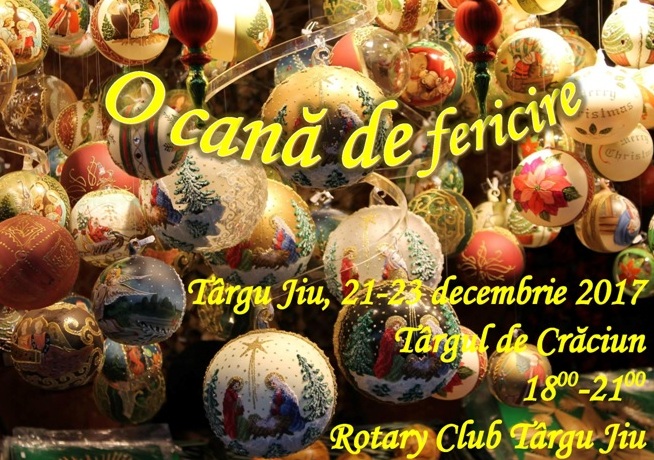Clubul Rotary Târgu Jiu organizează, pentru prima dată la Târgu Jiu, Proiectul „O cană de Fericire”. Proiectul se va desfășura în 21, 22 și 23 decembrie între orele 18:00 și 21:00 în cadrul Târgului de Crăciun din Centrul municipiului Târgu-Jiu.
