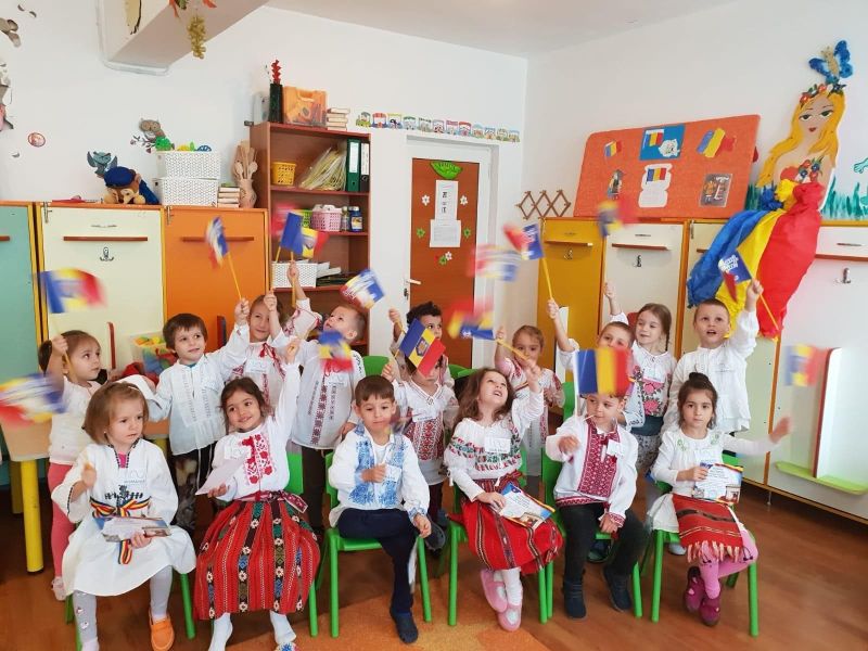 Cu inocenta putere de înțelegere a ceea ce a însemnat Marea Unire, preșcolarii grupei mijlocii „A”, de la G.P.P. Nr. 1 Târgu- Jiu, au desfășurat o serie de activități dedicate centenarului României Mari. Ca într-un arc peste timp, îndrumați de doamnele profesoare Conteș Anisia și Zorzon Irina, micuții au lecturat imagini despre manifestările prilejuite de acest eveniment, din trecut și de acum. Îmbrăcați în culorile drapelului, preșcolarii au realizat lucrări colective sau individuale. Au construit Arcul de Triumf, parada militară și au realizat Hora Unirii în cadrul activităților tematice. Tradiția a avut locul ei! Portul popular a fost îmbrăcat cu mândrie de micuții românași care au fluturat steaguri și au strigat :”La multi ani, România!”