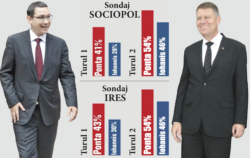 În data de 10 noiembrie, IRES a publicat un sondaj potrivit căruia Victor Ponta este cotat cu 54%, în timp ce Klaus Iohannis ar obține 46%.