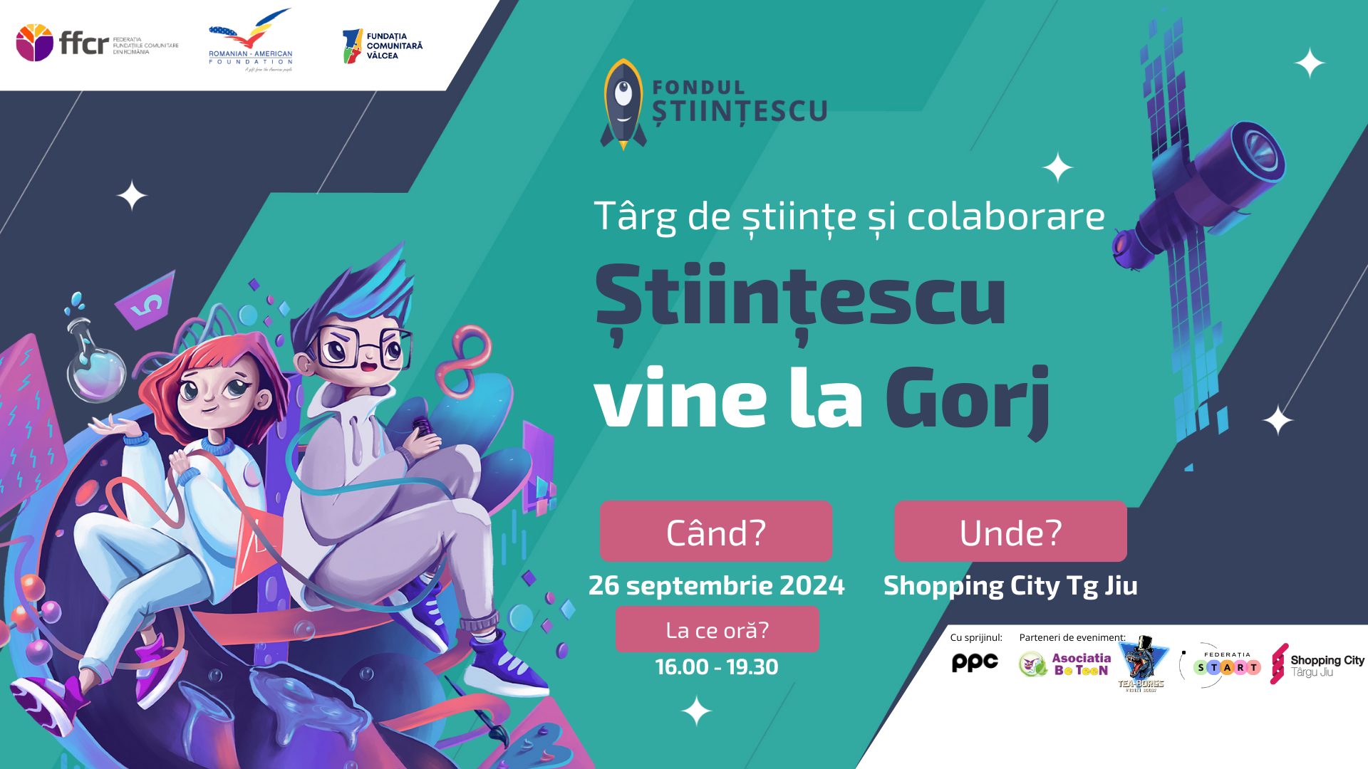 Evenimentul de la Târgu Jiu este primul de acest gen dedicat științei, organizat de Fondul Științescu prin Fundația Comunitară Vâlcea, cu sprijinul partenerilor Asociația Be Teen, TeaBorgs, Federația START în Gorj, CONAF Gorj, Asociația Team for Next Generation și al finanțatorilor Federația Fundațiile Comunitare din România – FFCR și PPC România.