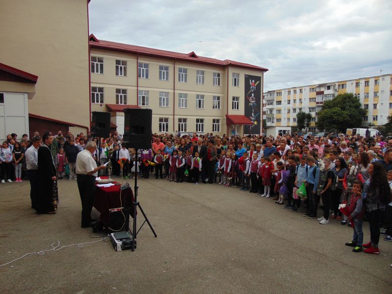 Îmi iau ghiozdanul în spate și împreună cu mamaie, tataie și mami mergem la Școala Gimnazială „Constantin Brâncuși” din cartierul 9 Mai. În curtea școlii sunt mulți elevi din clasele 0 la a VIII-a. Cei mici au uniforme școlare și sunt însoțiți de părinți. Mă întâlnesc cu o parte dintre colegii de la grădiniță și ne povestim cum ne-am petrecut vacanța. Afară este cer senin și soare, dar nu atât de strălucitor ca pe timpul vacanței. De la difuzoarele instalate lângă o masă din partea de răsărit a școlii suntem invitați să ne apropiem. Formăm un fel de careu în jurul profesorilor adunați lângă zidul școlii. Un bărbat voinic vorbește la microfon. Ne spune că se numește Ovidiu Băluțescu și este directorul școlii.