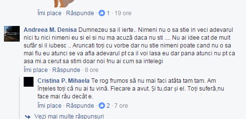 Acuzată de apropiații liceanului că ar fi vinovată de decesul lui Albert, prietena acestuia a făcut primele declarații în acest caz. ”Dumnezeu să îl ierte.. Nimeni nu o să știe în veci adevărul, nici tu, nici nimeni, eu și el și nu mă acuza, dacă nu știi …. Nu ai idee cât de mult sufăr și îl iubesc. Aruncați toți cu vorbe, dar nu știe nimeni, poate când nu o să mai fiu eu, atunci se va afla adevărul, pentru că îl voi lăsa eu, dar până atunci nu, pentru că așa mi-a cerut.  Să știm doar noi! Nu ai cum să înțelegi”, a postat tânăra, pe o rețea de socializare.