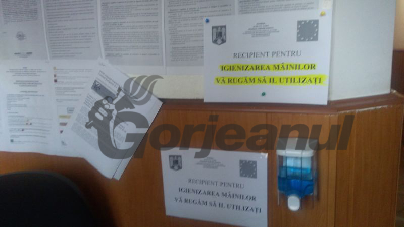 La intrarea în instituția publică a fost instalat un recipient cu o substanță dezinfectantă, în așa fel încât cetățenii care ajung în UAT să fie curați, așa cum cer ultimele norme pentru combaterea Coronavirusului.