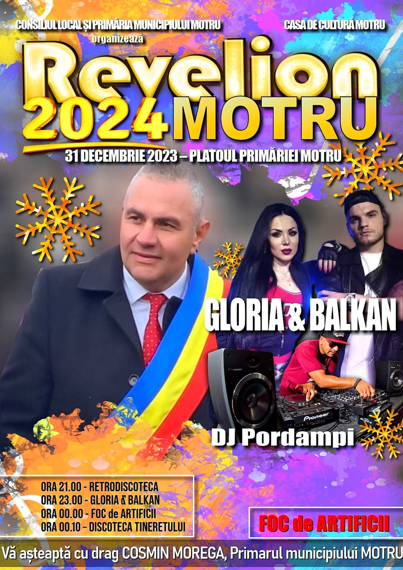 Astfel, primarul municipiului Motru, Cosmin Morega, a anunțat faptul că distracția de Revelion va începe încă de la ora 21:00, în seara de 31 decembrie, pe platoul din zona primăriei. În fața motrenilor va fi DJ Pordampi, Gloria & Balkan, urmând ca la miezul nopții să fie organizat un impresionat foc de artificii. Totodată, după acesta, autoritățile promit o discotecă a tineretului.