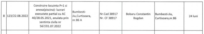 Lucrurile nu se opresc aici, chiar dacă instanța anulează autorizația de construcție ilegală pentru vila fiului primarului. Asta pentru că, primăria ajunge pe data 22.08. 2022 să elibereze o nouă autorizație de construcție pe numele lui Bobaru Constantin Bogdan, pentru terminarea lucrărilor la vilă. Acum se fac ultimele finisaje la vila cu piscină a familiei Bobaru, care se vehiculează că ar putea fi transformată chiar într-o pensiune. Cert este că ilegalitățile în acest caz sunt crase, se văd cu ochiul liber dar trebuie menționat că doar ANI a demarat cercetări în acest caz, restul organelor de anchetă refuzând să se autosesizeze.