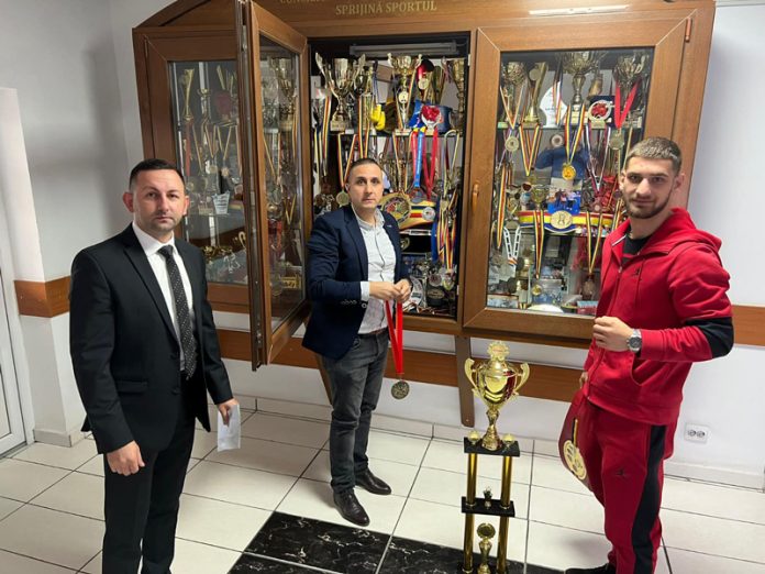 Tot astăzi, am avut onoarea să-i înmânez și un premiu în valoare de 12.000 de lei pentru medalia de bronz obținută la Campionatul European de Tineret.