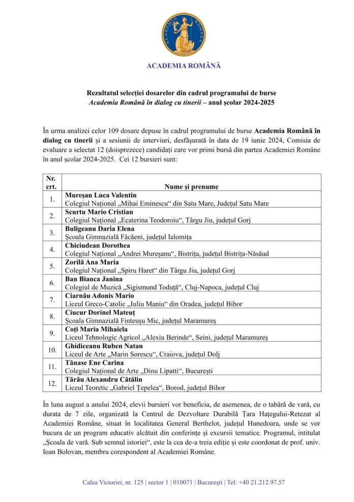 „Felicitările noastre, Mario! Mario Scurtu este unul dintre cei 12 elevi cu rezultate remarcabile care vor primi burse din partea Academiei Române în anul școlar 2024-2025. Cei 12 elevi au fost selectați din cei 109 care au aplicat pentru programul de burse «Academia Română în dialog cu tinerii»”, a anunțat Colegiul Național „Ecaterina Teodoroiu” din Târgu Jiu.