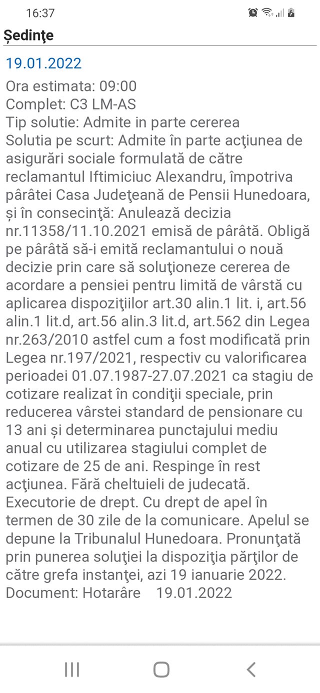 Primul dosar de pensionare pe Legea 197/2021, câștig de cauză la Deva