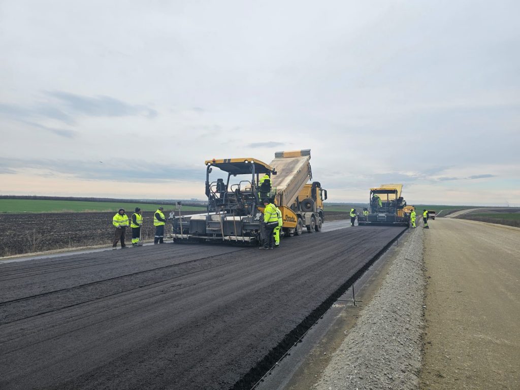 Primul strat de asfalt pe Drumul Expres Craiova – Pitești