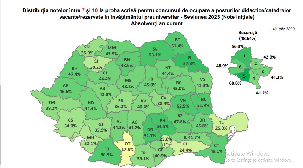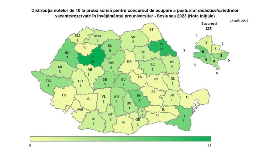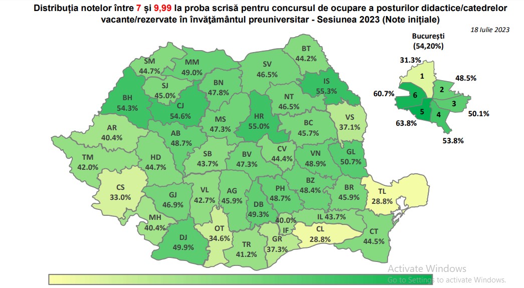 Gorjul nu are nicio notă de 10, în schimb 143 de dascăli au luat note peste 7. Pentru a obţine statutul de titular, adică angajarea pe perioadă nedeterminată în învățământ, profesorii trebuie să obţină minimum nota 7 la proba scrisă. Pentru suplinire este suficientă nota 5.