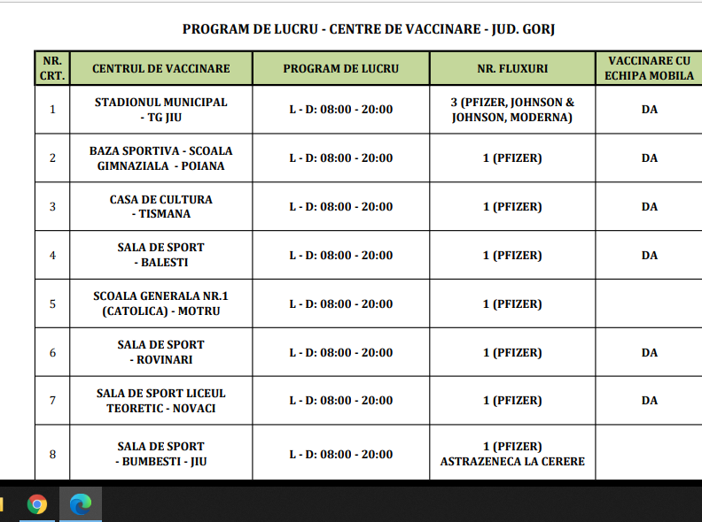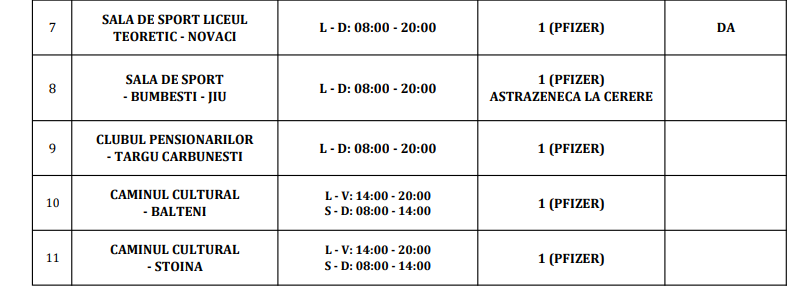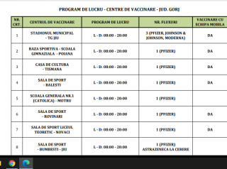 Programul centrelor de vaccinare din Gorj