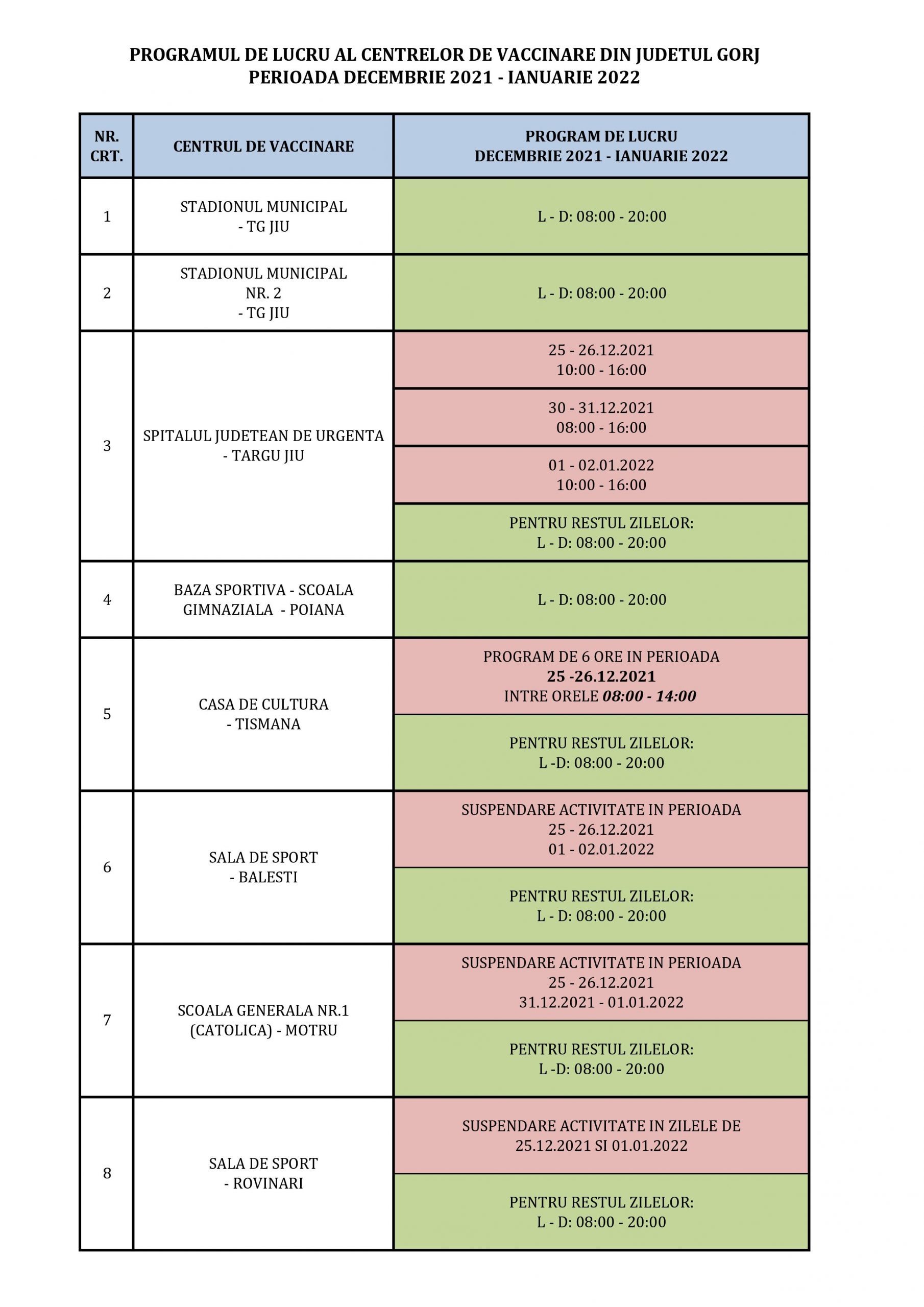 Programul de sărbători al centrelor de vaccinare din Gorj
