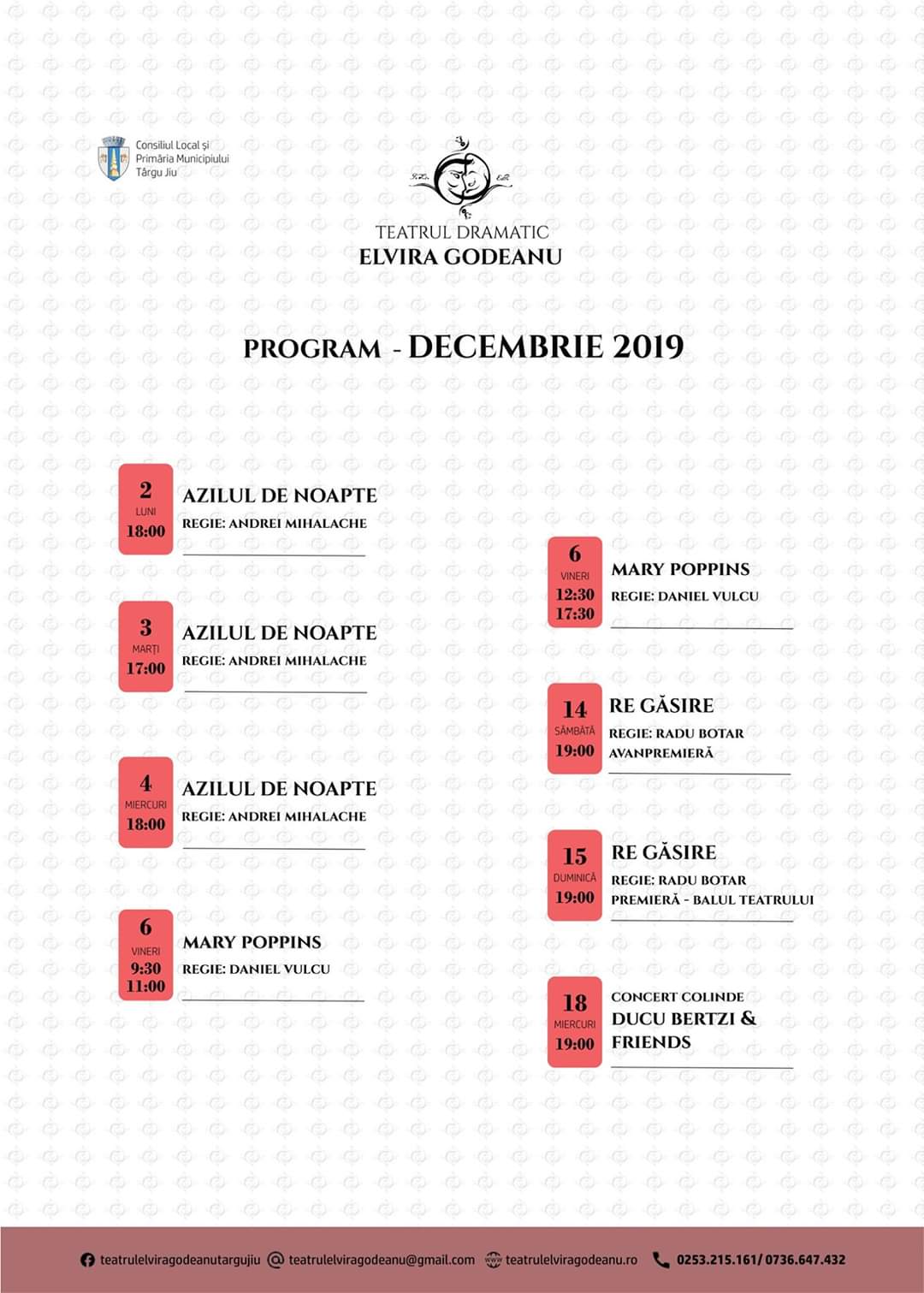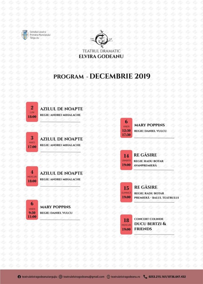 Programul lunii decembrie, la Teatrul Dramatic „Elvira Godeanu”