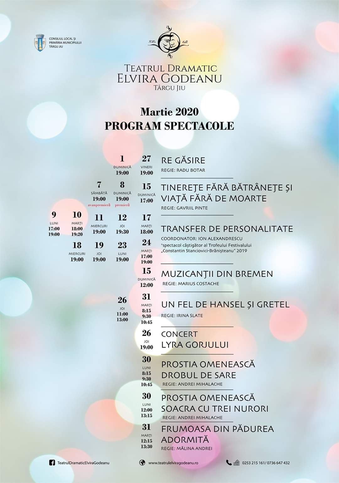 Programul lunii martie, la Teatrul „Elvira Godeanu” Târgu Jiu