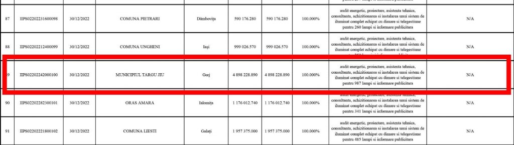 Încă un proiect dedicat modernizării iluminatului public din Târgu Jiu a fost aprobat, urmând a beneficia de o finanțare de un milion de euro de la Fondul de Mediu.