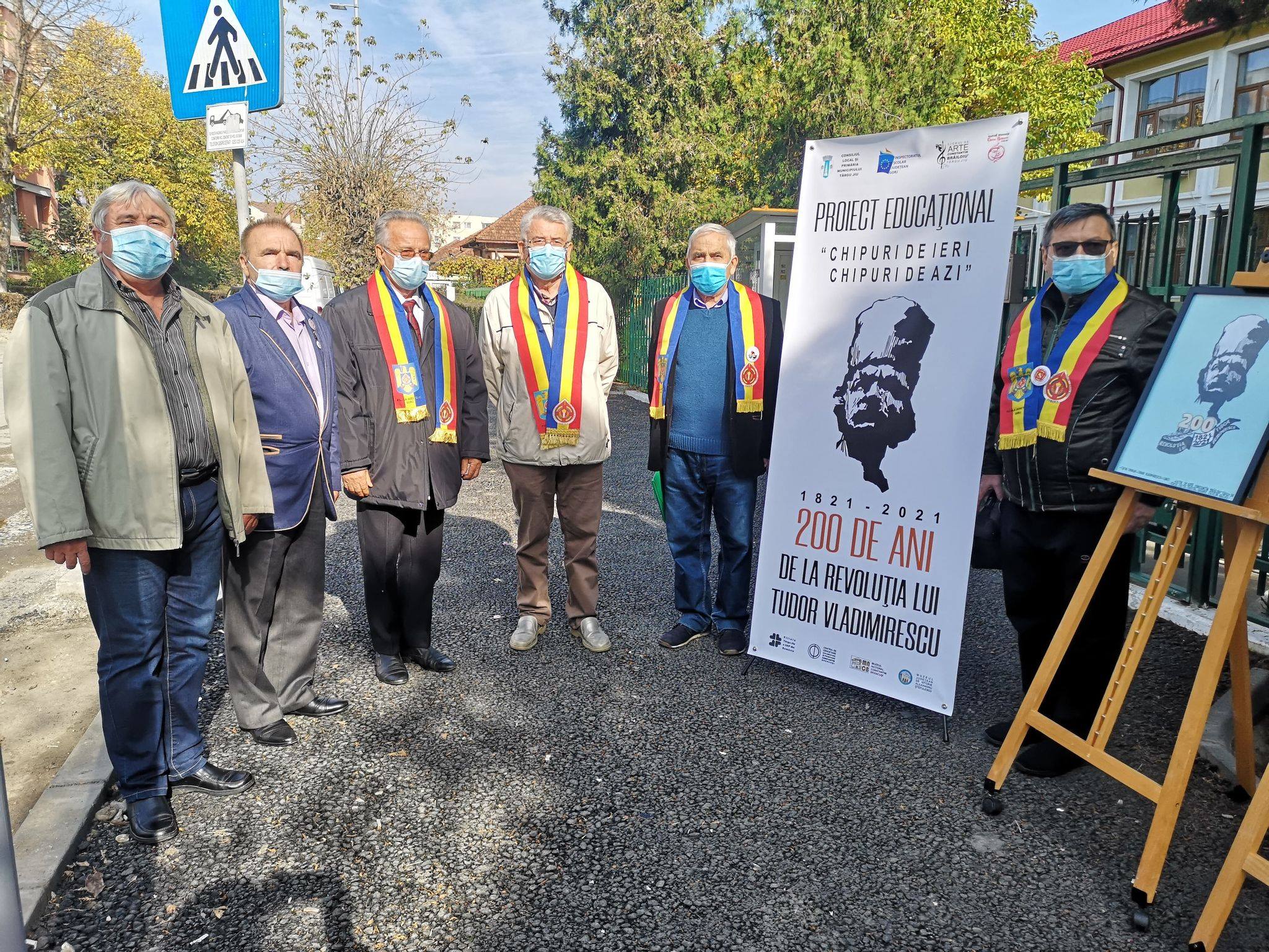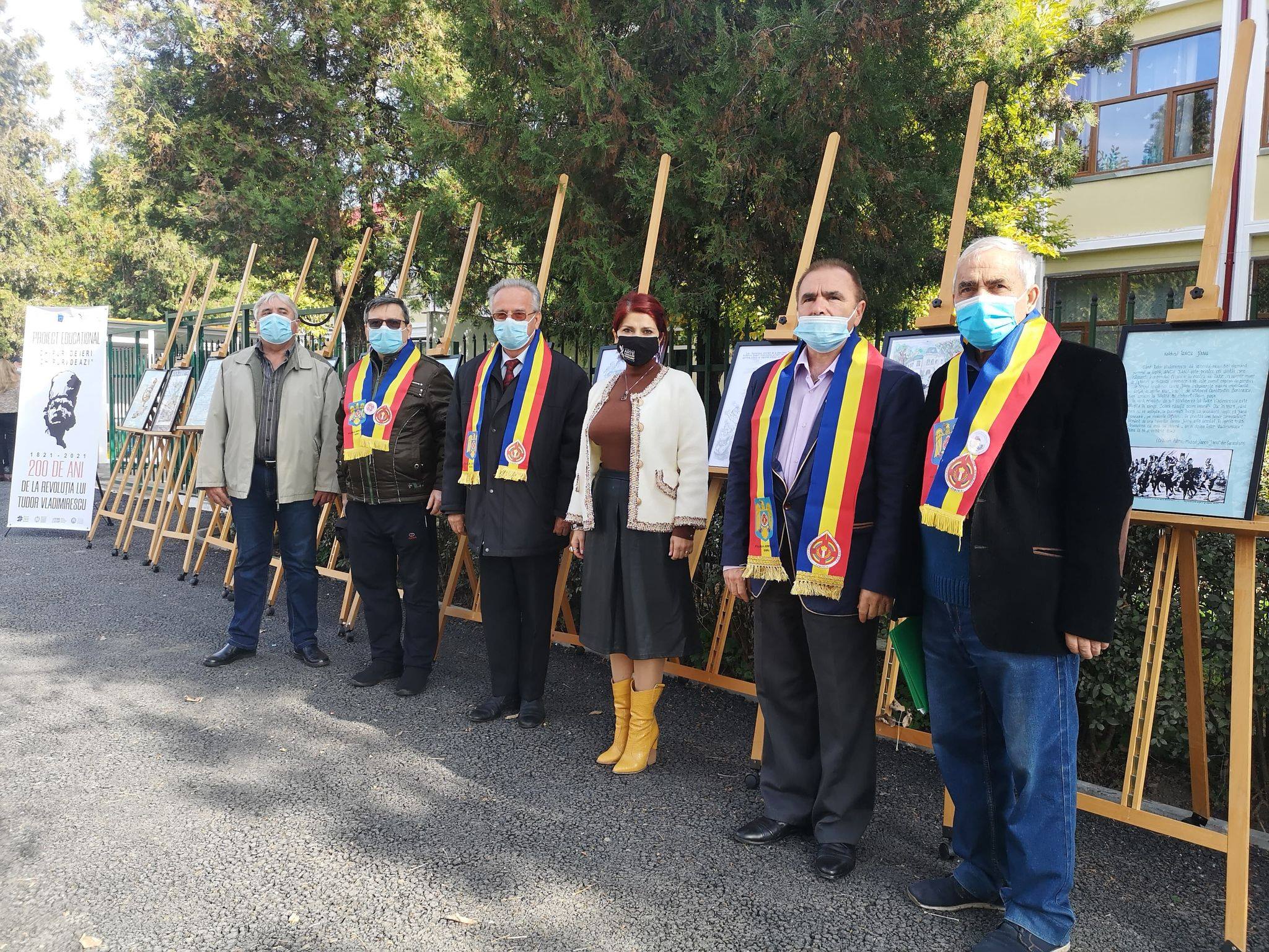 „Liceul de Arte «Constantin Brăiloiu» din Târgu-Jiu în parteneriat cu Inspectoratul Școlar Județean Gorj, Teatrul Dramatic „Elvira Godeanu” și Asociația Națională Cultul Eroilor «Regina Maria» – Filiala Județului Gorj, a demarat parteneriatul educațional «Chipuri de ieri, chipuri de azi» – 200 de ani de la Revoluția lui Tudor Vladimirescu. Organizarea acestui proiect, prin activitățile educative, are ca scop cunoașterea și prețuirea faptelor de vitejie ale Eroului Tudor Vladimirescu, ale eroilor gorjeni participanți la Revoluția din Decembrie 1989, în teatrele de operații din Kosovo, Irak și Afganistan, precum și recunoașterea și aprecierea justă față de vitejia și pildele de sacrificiu ale acestor eroi mai mult sau mai puțin cunoscuți. Activitățile artistice cu caracter educativ în care elevii vor fi implicați sunt: expoziții de grafică și pictură cu portrete de panduri, portrete de eroi contemporani, elemente de detaliu arhitectural și vestimentar, proiecte de arhitectură, gravuri, realizarea unui calendar și a unei reviste de benzi desenate, prezentare de modă cu inspirație etnografică ce reflectă momentul 1820-1821 și piese de teatru inspirate din evenimentele care au avut loc în perioada respectivă. Expoziția se vrea un reper de documentare vizuală și socială pentru elevii care vor expune în cadrul proiectului. Proiectul început astăzi, 29 octombrie 2020, cu o expoziție de grafică ce reprezintă o lecție de istorie vizuală a faptelor eroice ale lui Tudor Vladimirescu, se desfășoară pe durata unui an de zile, adică până în decembrie 2021” – a precizat doamna Ana-Daria Ionescu-Haidău, directorul Liceului de Arte „Constantin Brăiloiu” din Târgu-Jiu.