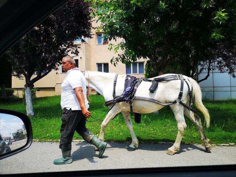 Proprietarul unei cabaline și-a plimbat tacticos calul pe străzile din Târgu-Jiu până la mall!