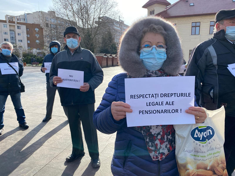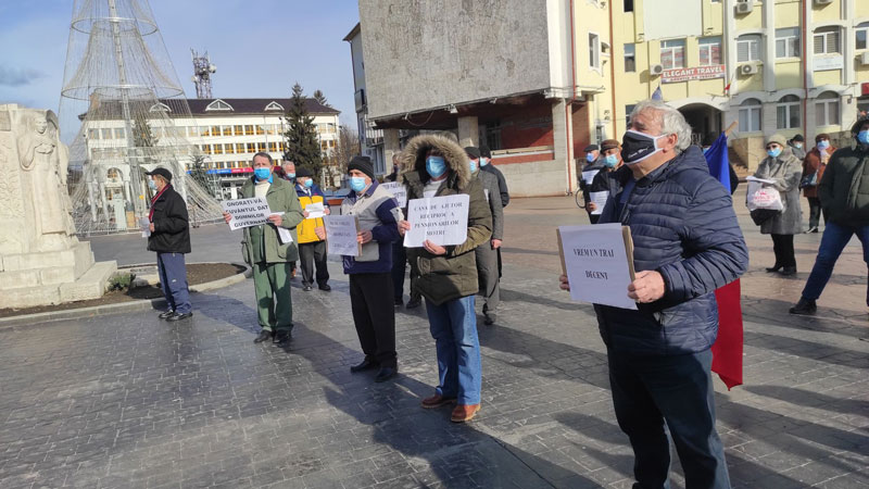 În jur de 50 de pensionari de la structurile din județ protestează în Piața Prefecturii din