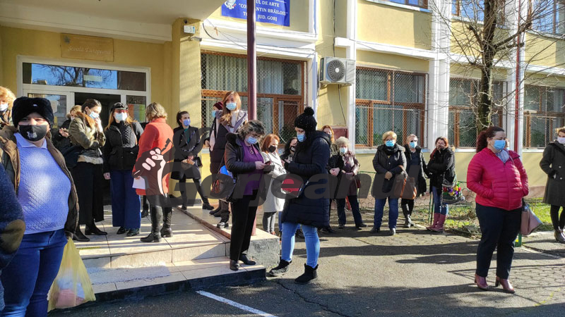Începând de la ora 14.00, profesori, elevi și reprezentanți ai părinților au ieșit în față