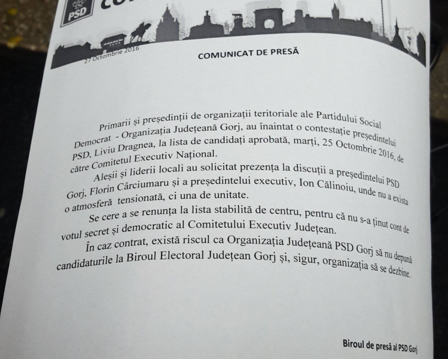 Deciziile luate în ședința de azi de la PSD Gorj au fost trecute într-un comunicat de presă, anexat în foto.