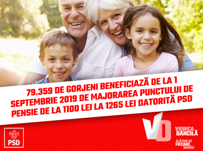 79.359 de gorjeni beneficiază de la 1 septembrie 2019 de majorarea punctului de pensie de la 1100 lei la 1265 lei
