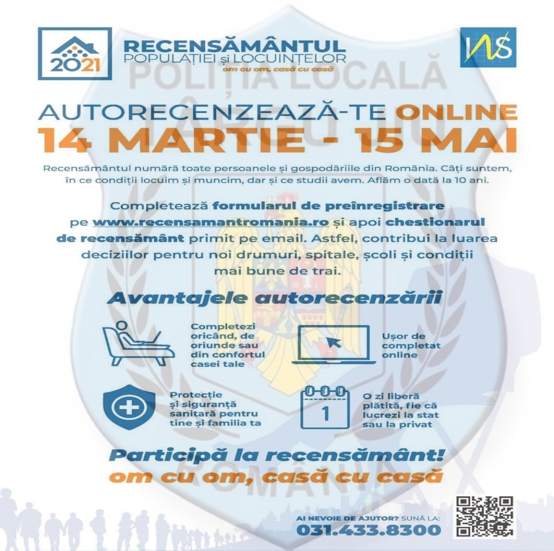 În perioada 14 martie – 15 mai 2022 se desfășoară etapa de autorecenzare din cadrul Recensământului Populației și Locuințelor.