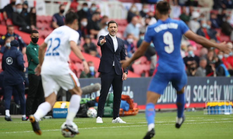 Naționala de fotbal al României a pierdut meciul cu Anglia de pe Riverside Stadium, scor 1-0. Diferența a fost făcută de la punctul cu var, după un joc în care tricolorii au dat o replică dârză selecționatei Albionului. Tricolorii au făcut 10 minute bune şi statistica a consemnat un şut pe spațiul porții adverse, expediat de Răzvan Marin. După un debut cu nerv din partea elevilor lui Mirel Rădoi, gazdele au trecut la cârma jocului şi ne-au înghesuit în propria jumătate. Totuşi, România şi-a arătat colţii pe contre, şi Adrian Păun l-a testat din nou pe Sam Johnstone cu o execuţie din afara careului (29). Cele mai mari ocazii ale reprizei au venit însă din partea englezilor. Dominic Calvert Lewin a lovit transversala după o centrare a lui James Ward-Prowse (32). Jadon Sancho şi-a imitat coechipierul câteva minute mai târziu, de această dată cu o execuţie de fineţe, de la marginea careului (38). Primul act a fost închis de cea mai bună oportunitate a tricolorilor. O combinaţie între Andrei Ivan şi Deian Sorescu l-a adus pe ultimul în postură de finalizator, dar portarul ,,leilor” a scos cu piciorul efortul dinamovistului. Partea secundă a debutat cu o noua ocazie mare a lui Calvert Lewin, dar atacantul lui Everton nu l-a putut învinge pe Florin Niţă din numai câţiva metri. În cele din urmă, selecționata Albionului a deschis scorul după un penalty. Rashford a transformat de la punctul cu var (68), după ce Jack Grealish a scos fault la debutantul Tiberiu Căpuşă. Jucătorii Universităţii Craiova, Cicâldău şi Ivan au ratat o dublă ocazie uriaşă în minutul 74, când Tyrone Mings şi Sam Johnstone au făcut minuni în faţa ,,oltenilor”. A venit rândul lui Florin Niţă să se remarce. Mai întâi, portarul român a apărat penaltiul executat de John Henderson (78), venit după un fault al lui Chiricheş, apoi i-a negat încă o şansă de gol lui Calvert Lewin. Până la final, Anglia a ratat alte ocazii importante, în timp ce Ivan nu a putut aduce egalarea. Un vârf de bocanc a stat între el şi centrarea lui Constantin Budescu. Din păcate, Mirel Rădoi a bifat alte ,,recorduri” din postura de tehnician. Înaintea disputei de pe Riverside, România nu mai pierduse contra Angliei de 51 de ani, de la Mondialul mexican din 1970. De asemenea, tricolorii nu fuseseră învinși niciodată pe pământ englezesc. Rădoi și-a trecut în cont și o altă premieră: a patra înfrângere consecutivă a României.