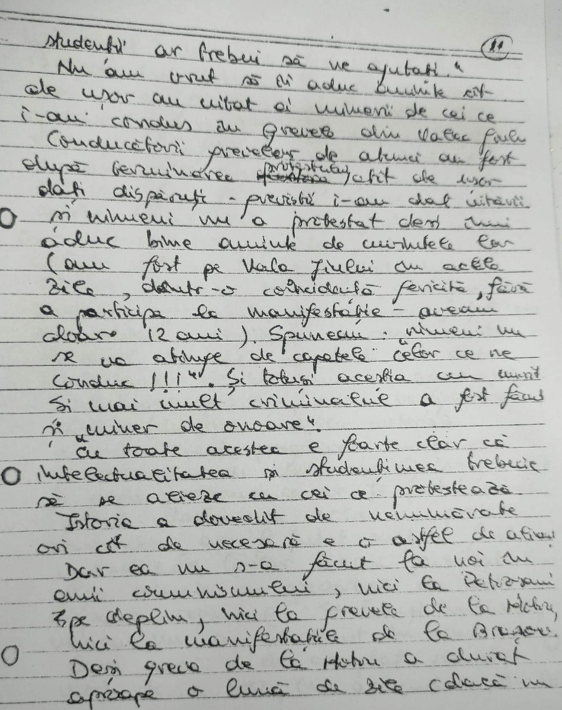 Am rămas surprins în urma afirmației acestuia (mai târziu aveam să înțeleg că este într-adevăr întemeiată): „Noi minerii, toți muncitorii de fapt degeaba ne revoltăm căci nu știm ce să mai cerem. La toate acuzele noastre și cererile noastre ei găsesc argumente împotrivă, scuze, amânări justificate prin atâtea și atâtea motive. Ar trebui să ne îndrume intelectualii și voi studenții ar trebui să ne ajutați.”