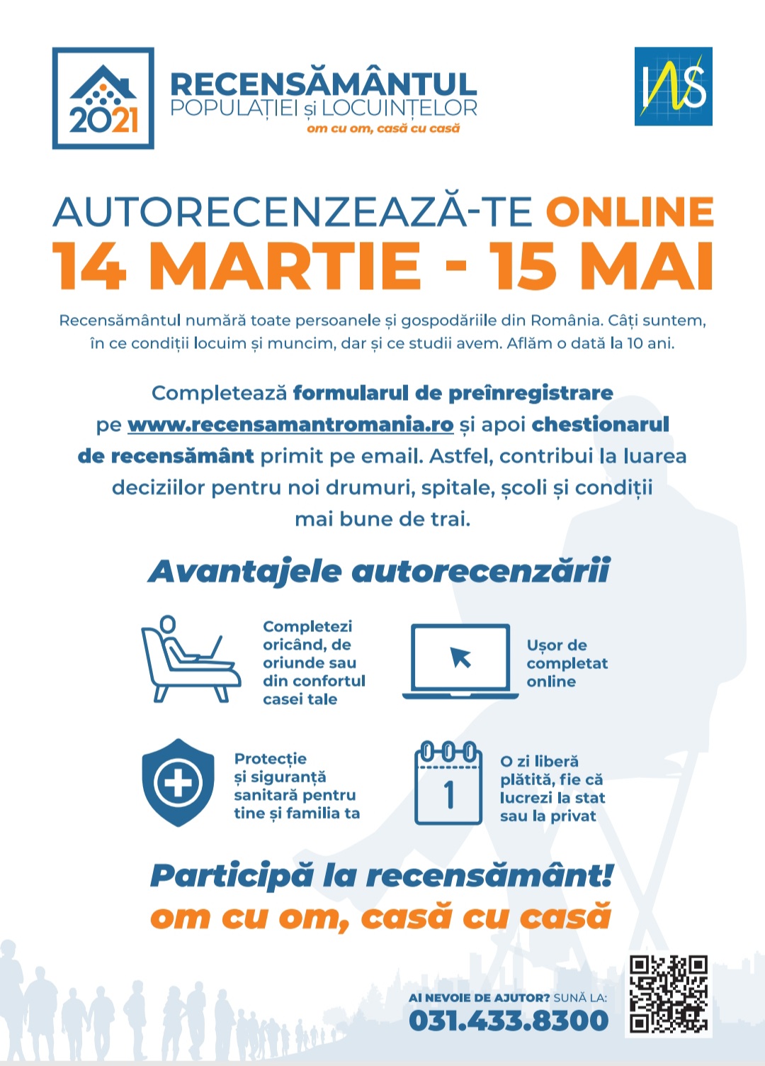 Prin completarea online a datelor de fiecare dintre noi, de pe orice smartphone, de pe tabletă, laptop sau calculator, nu mai este nevoie de vizita recenzorului în a doua perioadă de colectare 16 mai – 17 iulie, activitate în care colectarea datelor se va face în teren prin interviuri faţă în faţă.