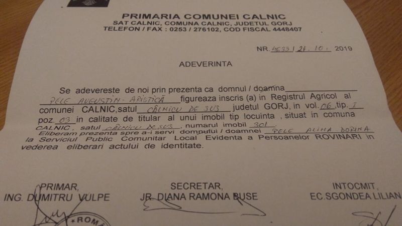 Alina Pele în vârstă de 36 de ani, din Câlnic, și-a pierdut cartea de identitate în urmă cu mai bine de o lună. S-a adresat autorității locale cu o cerere pentru a obține o adeverință necesară la SPCLEP Rovinari pentru eliberarea unui nou buletin. Deși a făcut cererea pe 23 septembrie 2019, o lună mai târziu Primăria Câlnic nu i-a eliberat adeverința cerută, persoana așteptând o lună degeaba actul dorit. Femeia s-a adresat primăriei cerând explicații, iar primarul Dumitru Vulpe i-a închis ușa în nas și i-a transmis să vină pe 28 noiembrie după hârtie, adică la două luni mai târziu, în urma solicitării adeverinței. Localnica a fost scoasă afară din biroul edilului, cerându-i-se să se înscrie în audiență, dacă are ceva să-i transmită. Solicitanta nu a mai făcut asta, deoarece secretara primăriei i-a promis că rezolvă situația pe loc, eliberându-i astfel, la o lună și o săptămână după solicitare, actul dorit. Femeia consideră că edilul a dat dovadă de abuz în serviciu, nefiind prima dată când la persoanele pe care nu le agreează le refuză sprijinul impus de lege. ,,Am consultat un avocat și o să îi fac primarului și o plângere penală pentru că nu este pentru prima dată când refuză, în cazul meu, să își facă datoria”, a declarat Alina Pele.