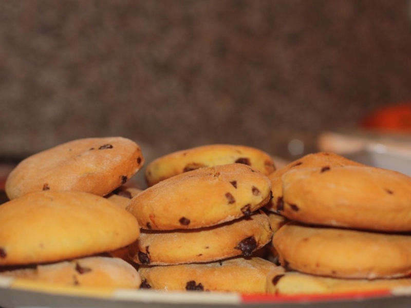 Se amestecă făina cu praful de copt, apoi cu margarina, zahărul şi oul. În acest amestec se adaugă bucăţele de ciocolată, coajă rasă de portocală şi se frământă până se obţine un aluat moale. La final, aluatul se pune în folie de aluminiu şi se lasă în frigider jumătate de oră. După aceea se presară făină şi se întind foi de aluat groase de 5 mm. Se decupează formele de biscuiţi, care se pun într-o tavă şi se ţin la cuptor timp de 10-15 minute.