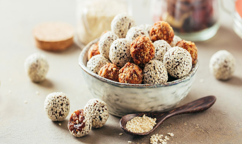 Toate fructele uscate se țin la înmuiat circa 30 de minute. Se scurg bine și se pun într-un robot de bucătărie. Se omogenizează cu câteva impulsuri. Se adaugă nucile măcinate și nuca de cocos, apoi bananele, pudra de cacao, aromele și se omogenizează până când rezultă o pastă. Se adaugă suc de portocale, pentru a ajunge la consistența unei creme foarte dense. Cu mâinile umede, se formează biluțe și se tăvălesc prin pudra de cacao, nuca de cocos rasă sau merișoare uscate măcinate. Se pot folosi și semințe de susan ori nucă măcinată. Se păstrează la frigider sau într-un loc răcoros și uscat.