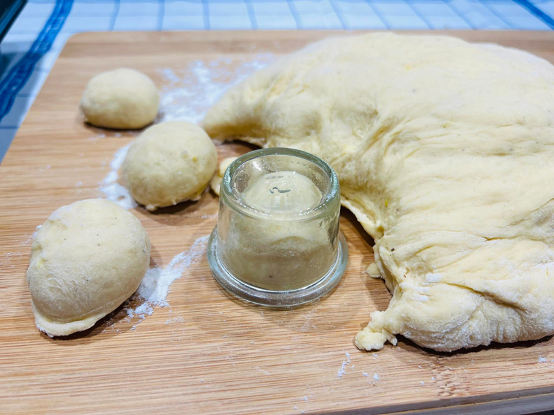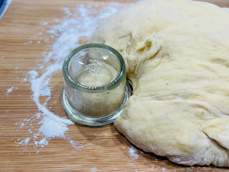 aluatul, este foarte important să nu îl mai frământăm. El poate fi tăiat cu un cuțit sau cu un