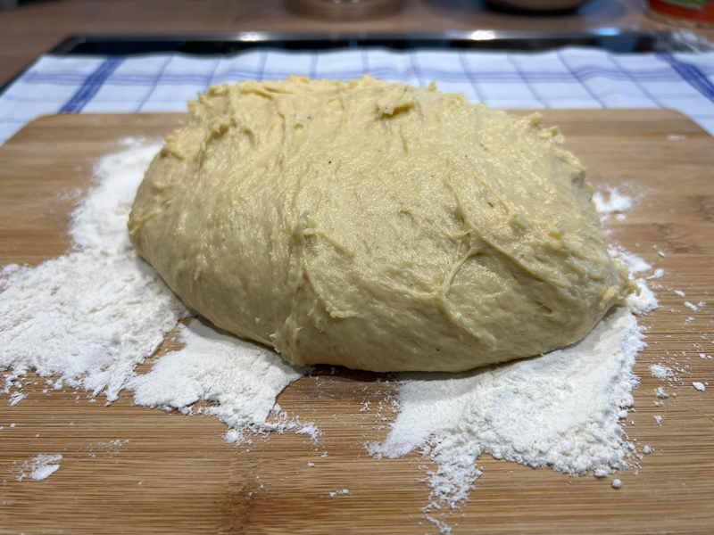 Aluatul se frământă până când textura lui devine ușor elastică și pufoasă! De menționat aici