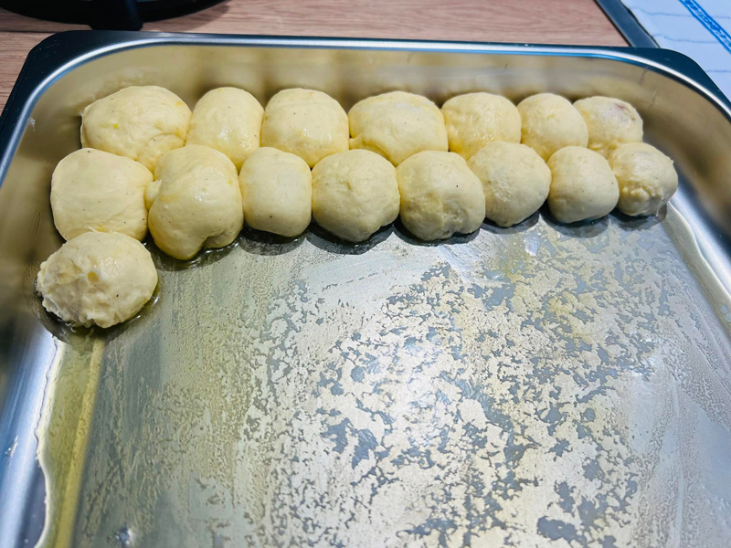de caise și le închidem, formăm un fel de găluște după care le așezăm în tavă. În acest fel,
