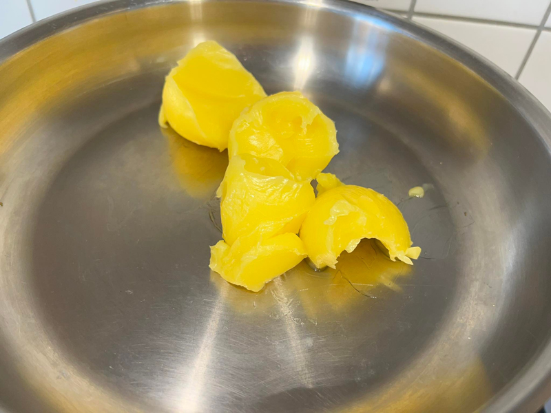 Recomandarea mea este ca șnițelele, cordon blue să le prăjim în unt clarifiat și în tigaie de inox. Untul clarifiat dă un gust aparte și are un punct de fum mult mai ridicat decât uleiul. Mai ales că pesmetul se arde repede în ulei. Înainte să prăjim cordon blue, adăugăm uleiul într-o tigaie emailată și prăjim cartofii până vor avea culoarea aurie, după care, reducem temperatura la cartofi, adăugăm sare grunjoasă și îi lăsam acolo. Între timp, într-o tigaie de 28 de cm în diametru, adăugăm 4 linguri mari de unt clarifiat. Este foarte important ca șnițelul să fie prăjit în suficient unt clarifiat. Carnea pe care am împăturit-o anterior o dăm, prima dată, prin făină, ou, apoi pesmet. Adăugăm cordon blue în tigaie și îl prăjim pe ambele părți, până va avea culoarea aurie. După ce a căpătat culoarea aurie, le scoatem și le punem pe un prosop absorbant de bucătărie. Adăugăm peste cartofi pătrunjelul verde, tocat mărunt, și pentru un minut îi mai lăsăm la temperatura redusă. Pe o farfurie servim cordon blue, alături de cartofi, o felie de lămâie și dacă doriți cu o lingură de marmeladă de merișoare.