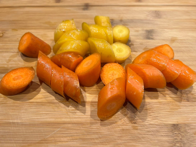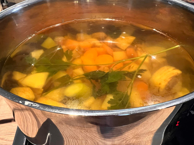 * 1 kg de legume amestecate: morcovi, morcovi galbeni, rădăcină de țelină, păstârnac, pătrunjel, praz, ceapă, pătrunjel verde;